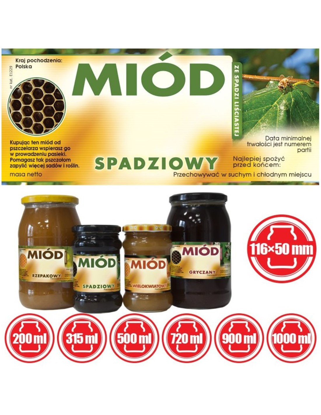 ETYKIETY NA MIÓD SPADZI LIŚCIASTEJ 116x50 – 100 SZT.