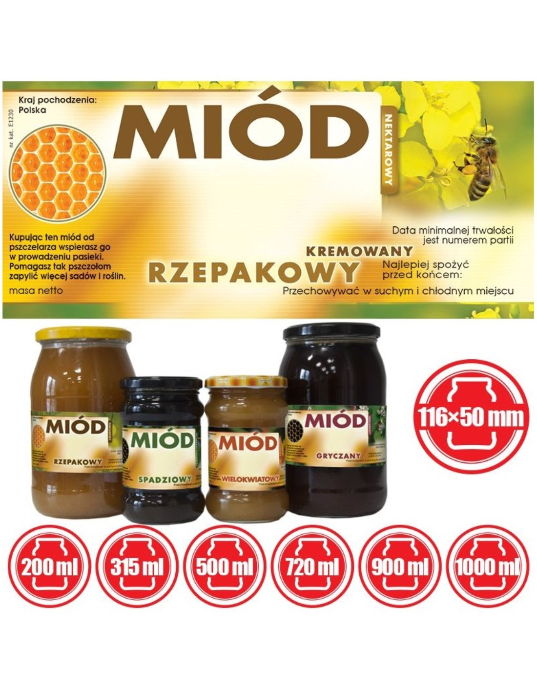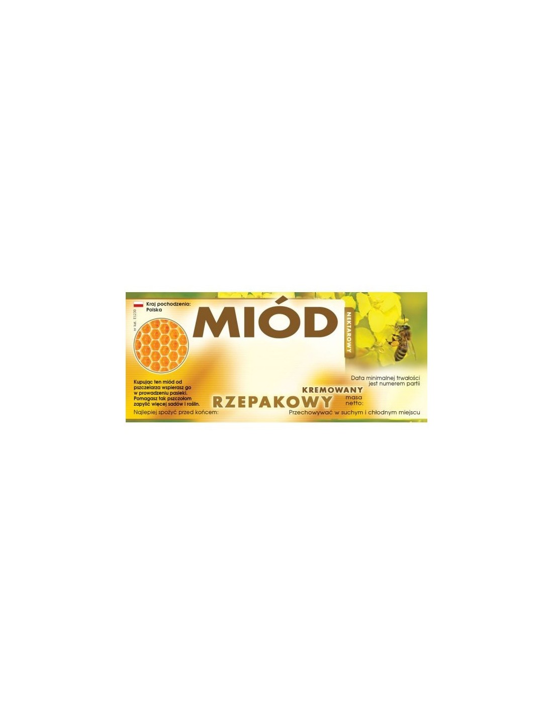 ETYKIETY NA MIÓD RZEPAKOWY KREMOWANY 116x50 – 100 SZT.