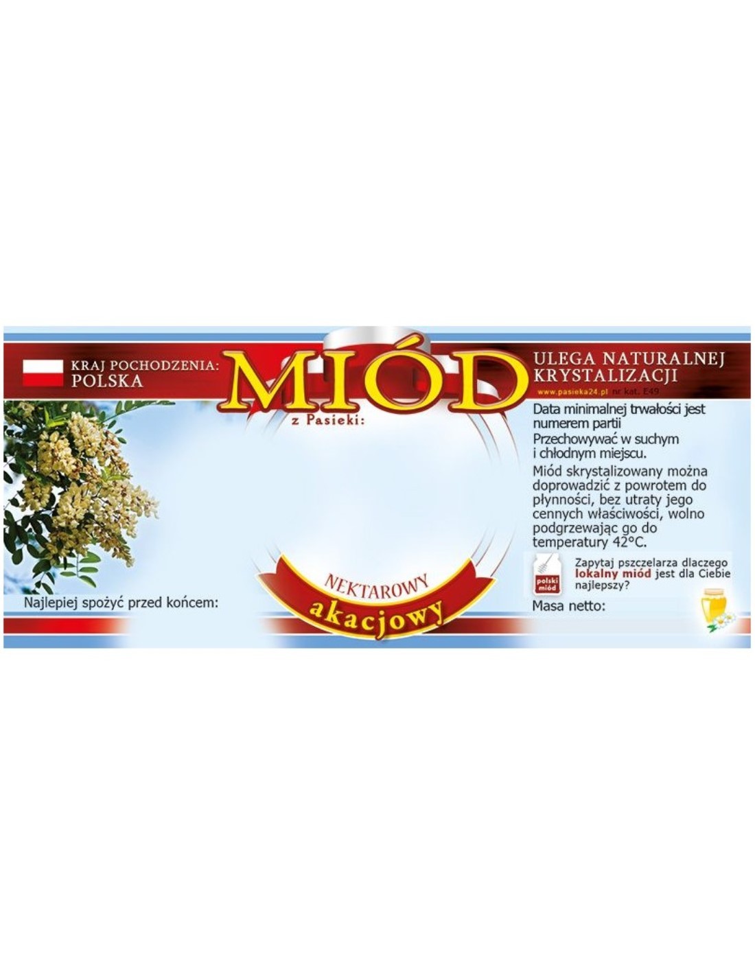 ETYKIETY NA MIÓD AKACJOWY 116X50 – 100 SZT.