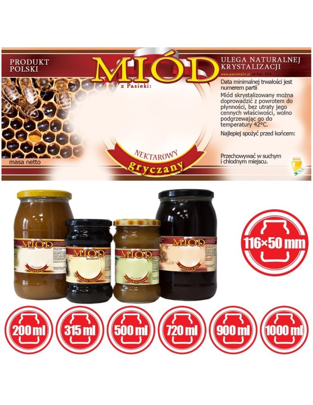ETYKIETY NA MIÓD GRYCZANY 116X50 – 100 SZT.