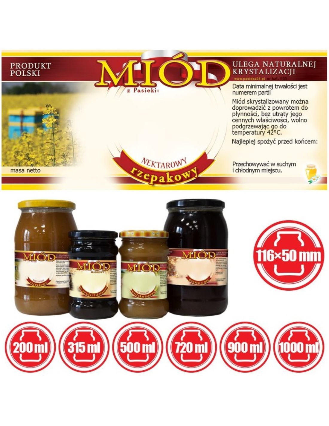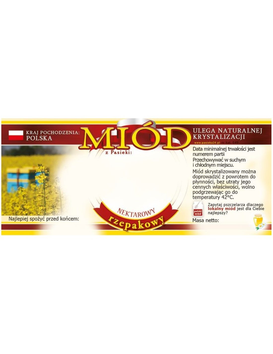 ETYKIETY NA MIÓD RZEPAKOWY 116X50 – 100 SZT.