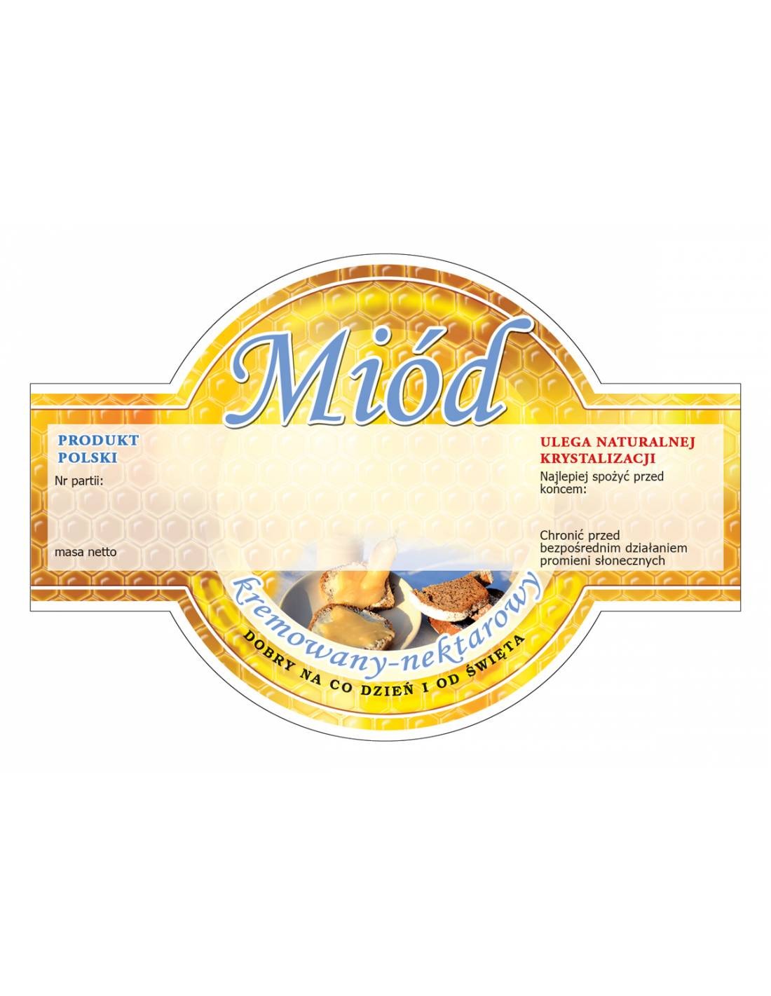 ETYKIETY OKRĄGŁE NA MIÓD KREMOWANY 125X86 – 100 SZT.