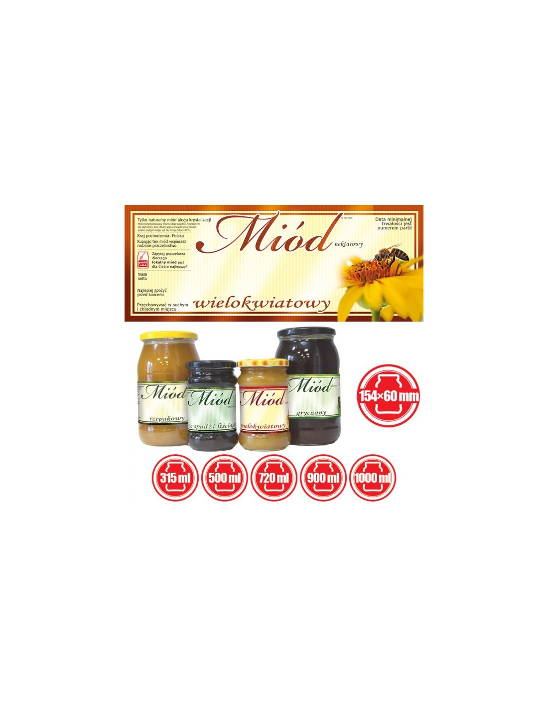 ETYKIETY NA MIÓD WIELOKWIATOWY 154X60 (DUŻE) – 100 SZT.