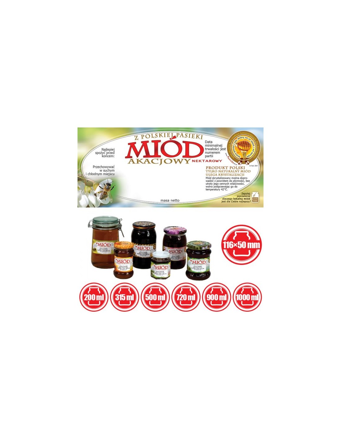 ETYKIETY NA MIÓD AKACJOWY 116X50 – 100 SZT.