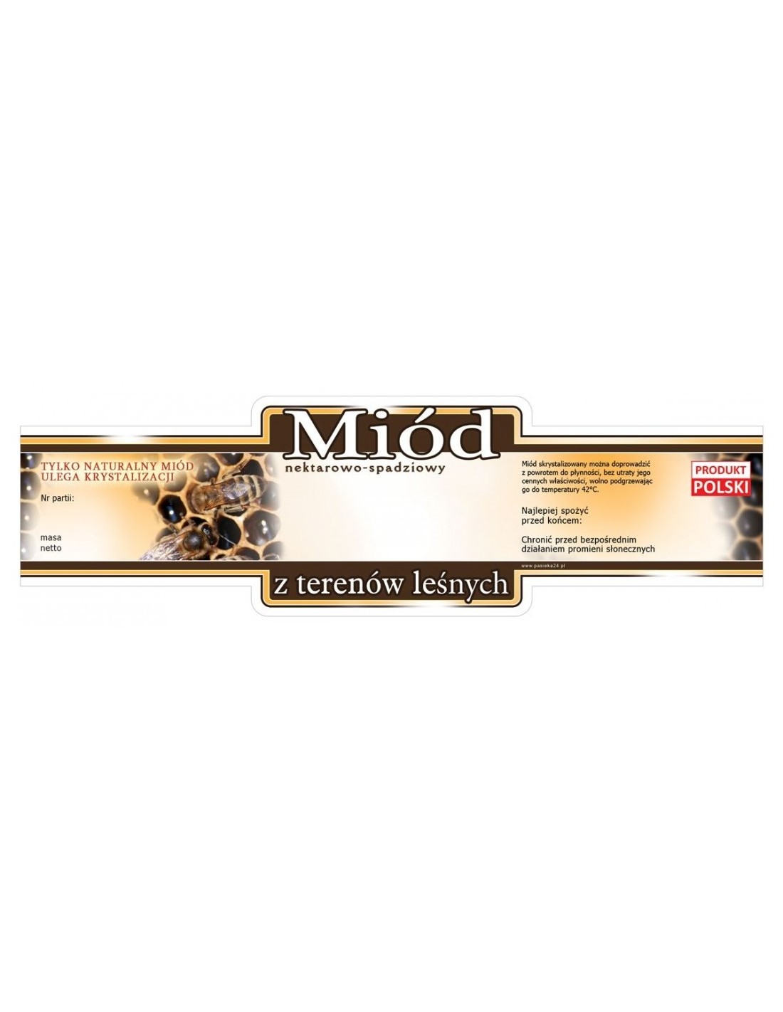 Do etykiety polecamy również nasze ciekawe nakrętki na słoiki oraz banderolki proste 22x142mm, w naszej ofercie można znaleźć również broszurki informacyjne lub banery, proponujemy także ciekawe opakowania na prezent do miodu.