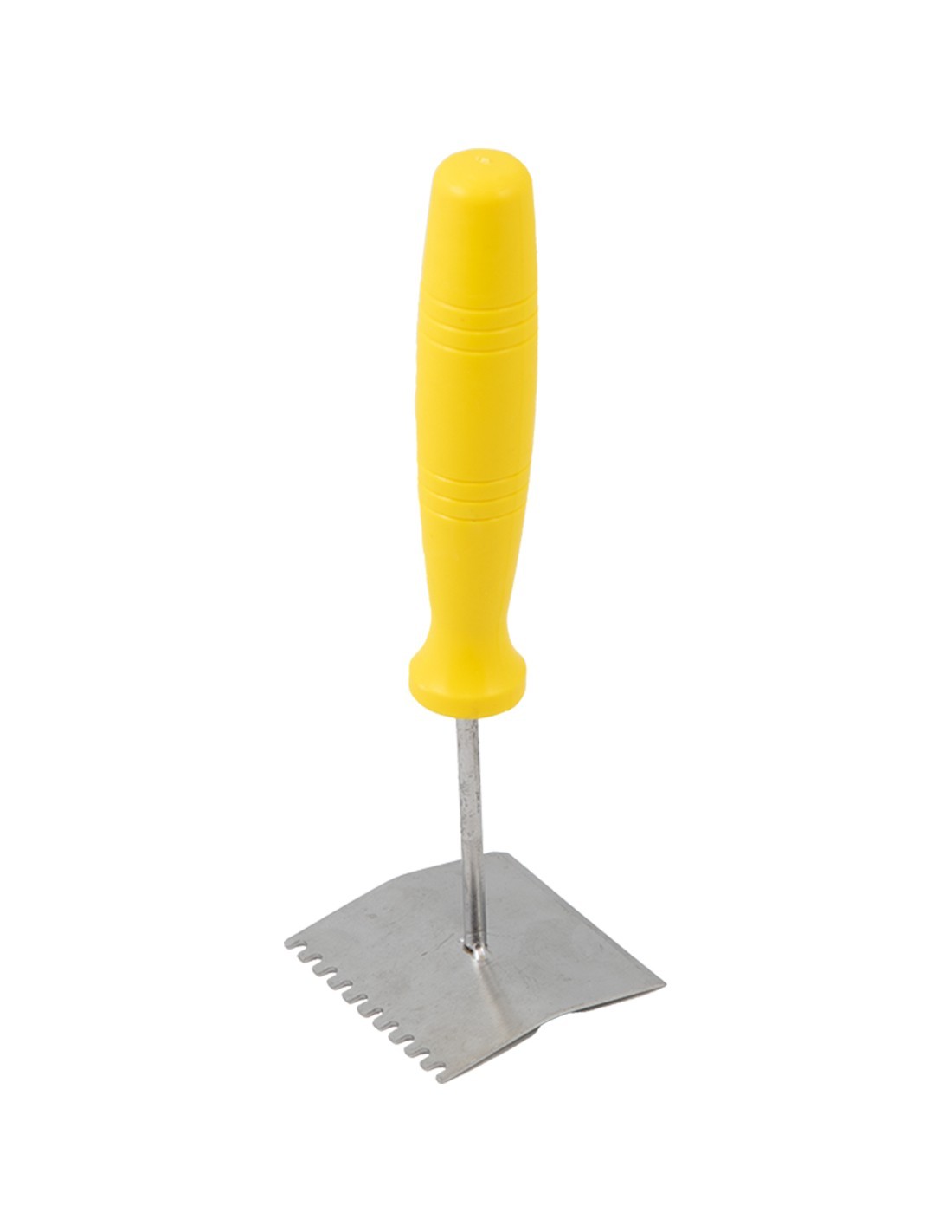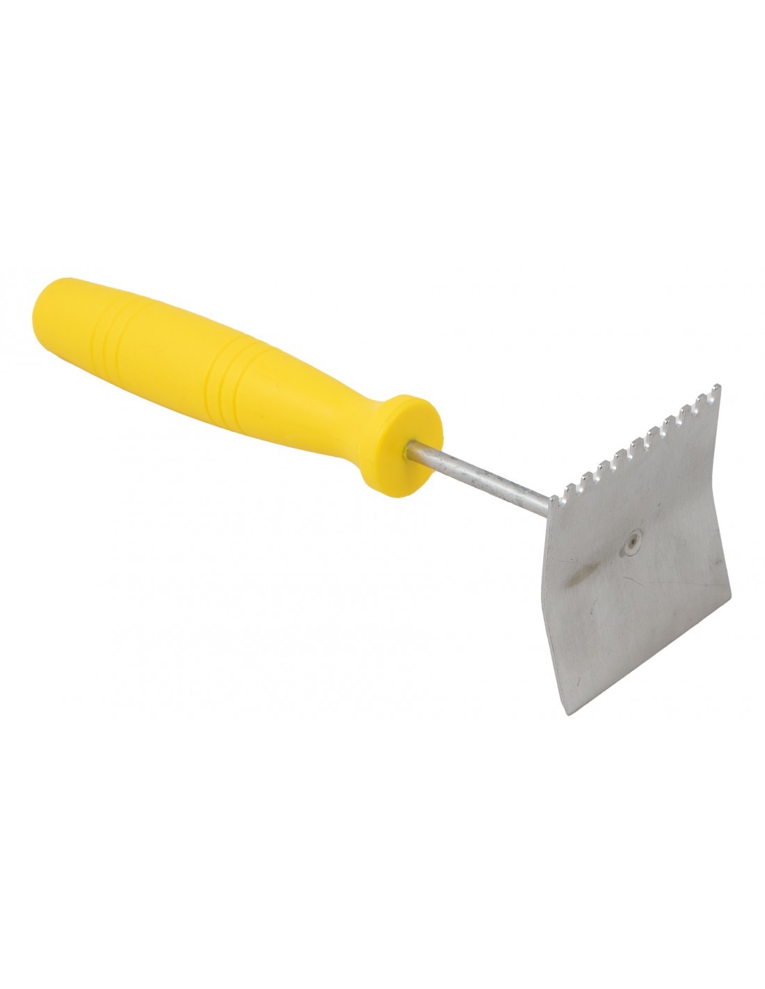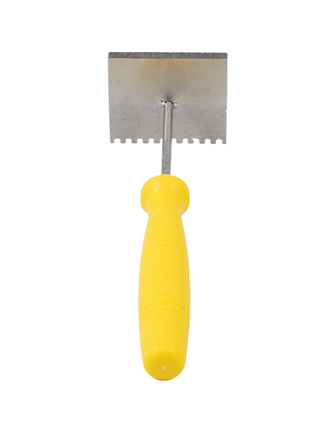 Wygodna plastikowa rączka zapewnia użytkownikowi komfort i pewny chwyt, dzięki czemu skrobak jest wygodny w użytkowaniu, a prace w pasiece stają się bardziej precyzyjne i efektywne. To nieocenione narzędzie dla każdego pszczelarza, które pozwala utrzymać ula w czystości i dbać o dobrostan pszczół w sposób profesjonalny i skuteczny.