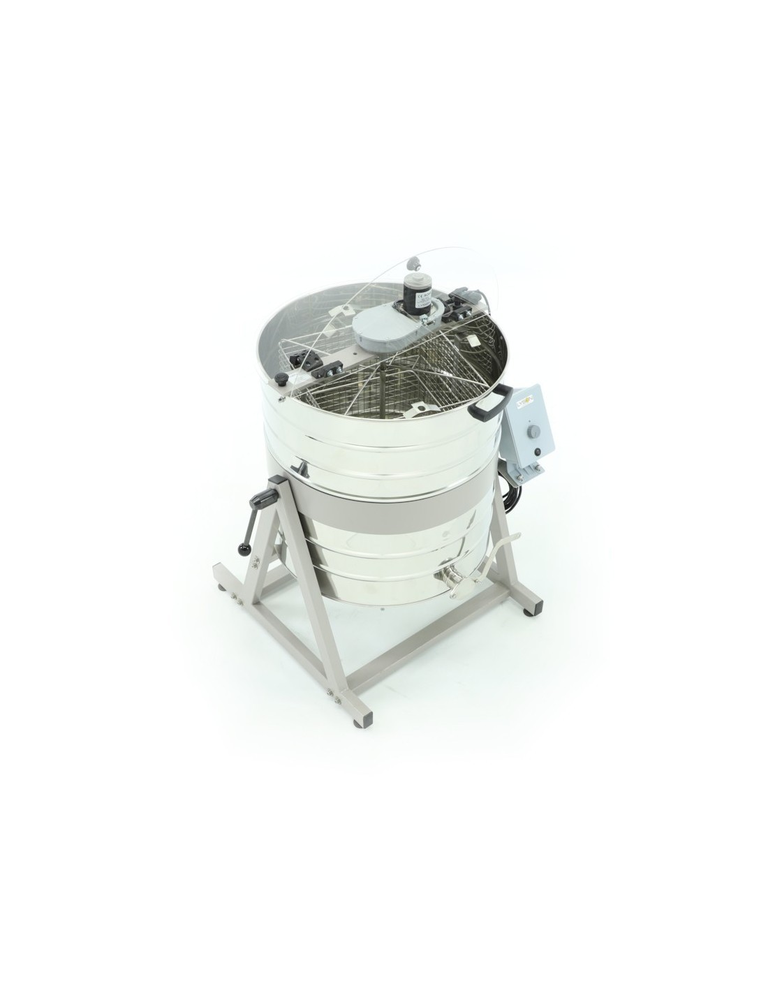 Miodarka charakteryzuje się unikatowymi rozwiązaniami technicznymi, które zapewniają łatwy dostęp do wnętrza bębna i umożliwiają bezproblemowe obsługiwanie urządzenia. Specjalny montaż bębna umożliwia łatwy załadunek i rozładunek wirowanych ramek, a system blokujący kosz miodarki zapewnia bezpieczeństwo pracy podczas miodobrania.