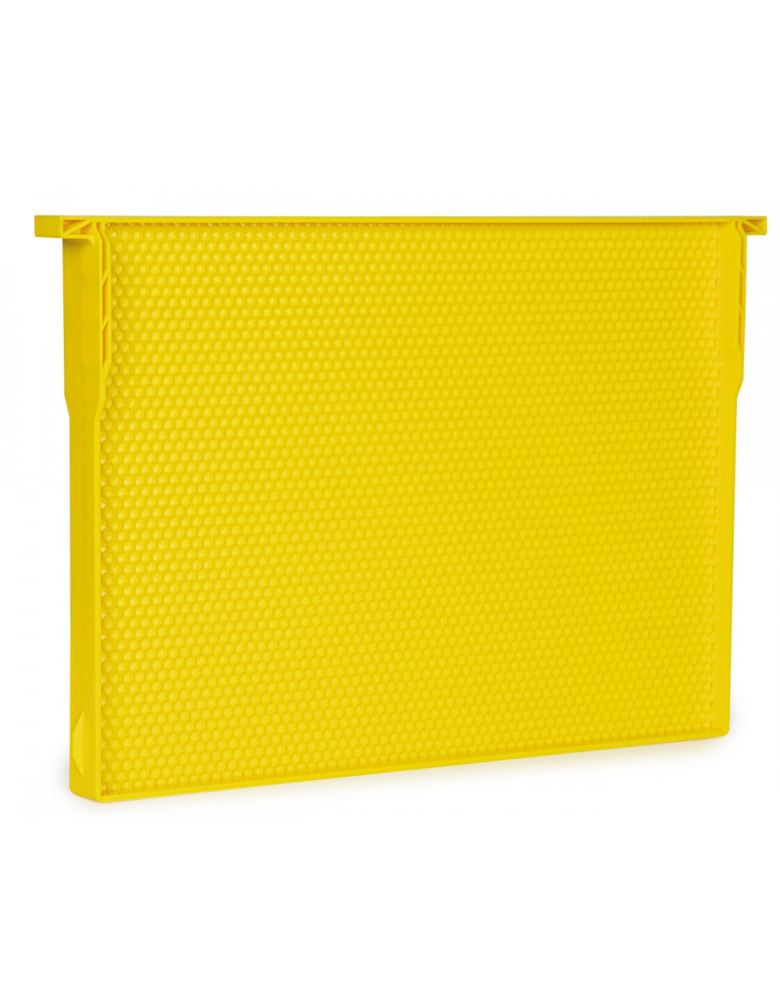 Ramka nie posiada luk pomiędzy drewnianą ramką a wtopioną węzą, co daje dodatkową przestrzeń dla pszczół do pracy. W przypadku ula wielkopolskiego o 10 ramkach uzyskujemy dodatkowe 10% powierzchni plastra, co przekłada się na dodatkową ramkę pełną miodu. Dodatkowo, rama wyposażona jest w wspornik boczny, który chroni pszczółki przed zgnieceniem.