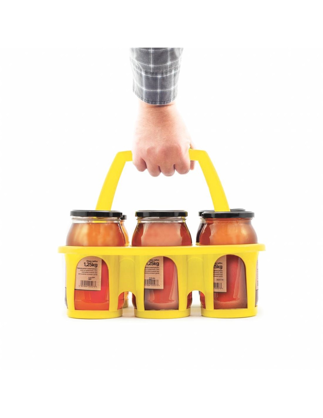 Uchwyt z możliwością demontażu na czas transportu odporny i wygodny do przenoszenie słoików.