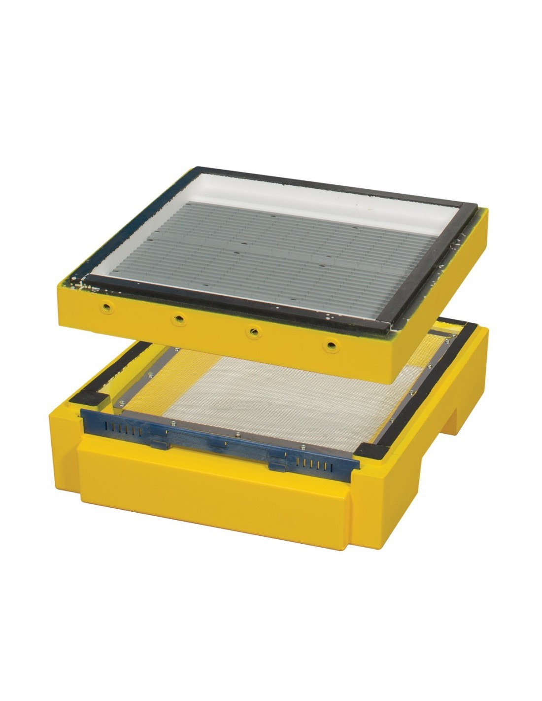 Segmentowy poławiacz pyłku to styropianowa rama w której zamontowana jest płytka strącająca odnóża pyłkowe a pod nią znajduje się siatka pełna oczek o średnicy 3,5mm przez które przelatuje pyłek na tackę.